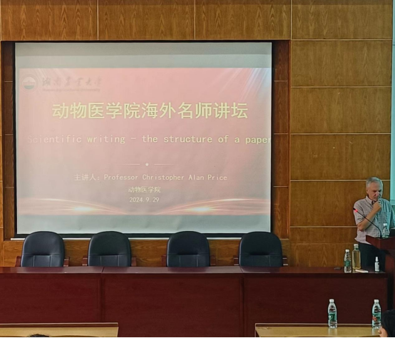 2024年9月29日上午,加拿大蒙特利尔大学Christopher Alan Price教授应yl6809永利yl6809永利的邀请于动医楼T形教室为学院师生作了以“科研论文结构及其写作”为主题开展了学术报告。yl6809永利部分老师以及2024级研究生参加了此次报告。