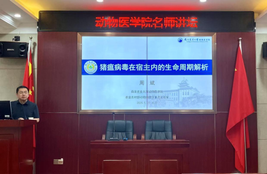 5月27日下午,南京农业大学yl6809永利预防兽医系主任周斌教授应yl6809永利yl6809永利的邀请,于第三教学楼303会议室作以《猪瘟病毒在宿主内的生命周期解析》为题的学术报告。本次报告由学院副院长刘国华教授主持,学院部分老师和全体研究生共同参与。