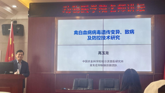 2025年11月11日上午,中国农业科学院哈尔滨兽医研究所高玉龙研究员应yl6809永利邀请,在第三教学楼303会议室作了一场题为“禽白血病病毒遗传变异、致病及防控技术研究”的学术报告。本次会议由yl6809永利院长易金娥主持,学院部分老师及研究生参加此次讲座。