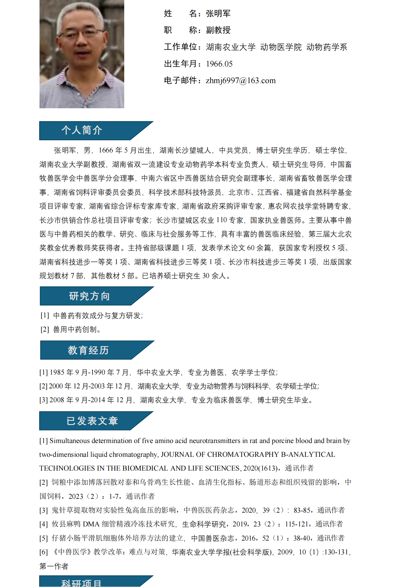 张明军副教授简介