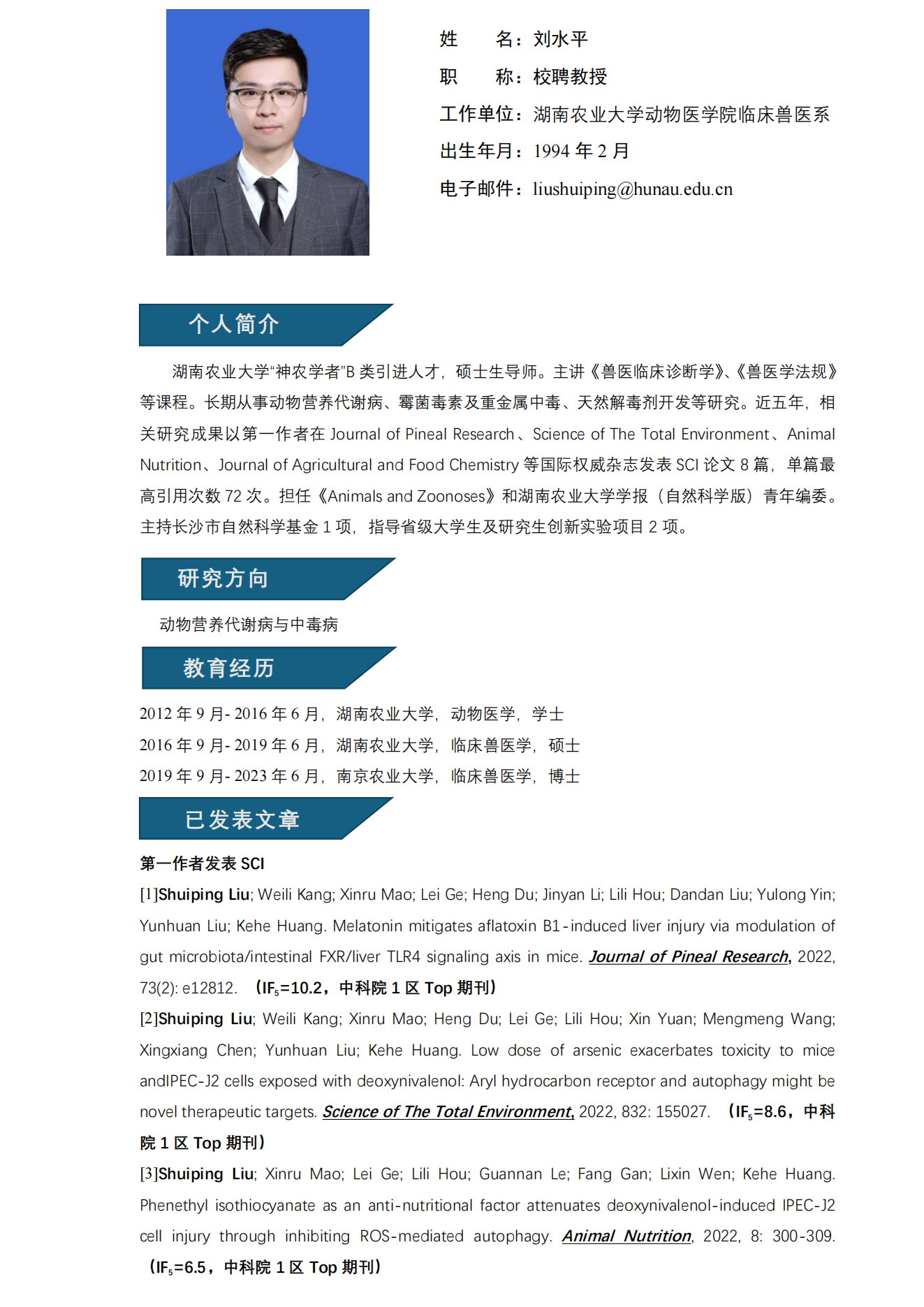 刘水平教授简介