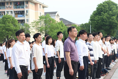 为庆祝建党一百周年,进一步增强师生爱国热情,5月10日上午,yl6809永利升旗仪式于修业广场隆重举行,yl6809永利全体师生以饱满的热情为建党100周年献礼。yl6809永利副校长吴波教授,yl6809永利领导,师生党员及2019级、2020级全体本科生参加。升旗仪式由2020级本科生辅导员陈伶主持。